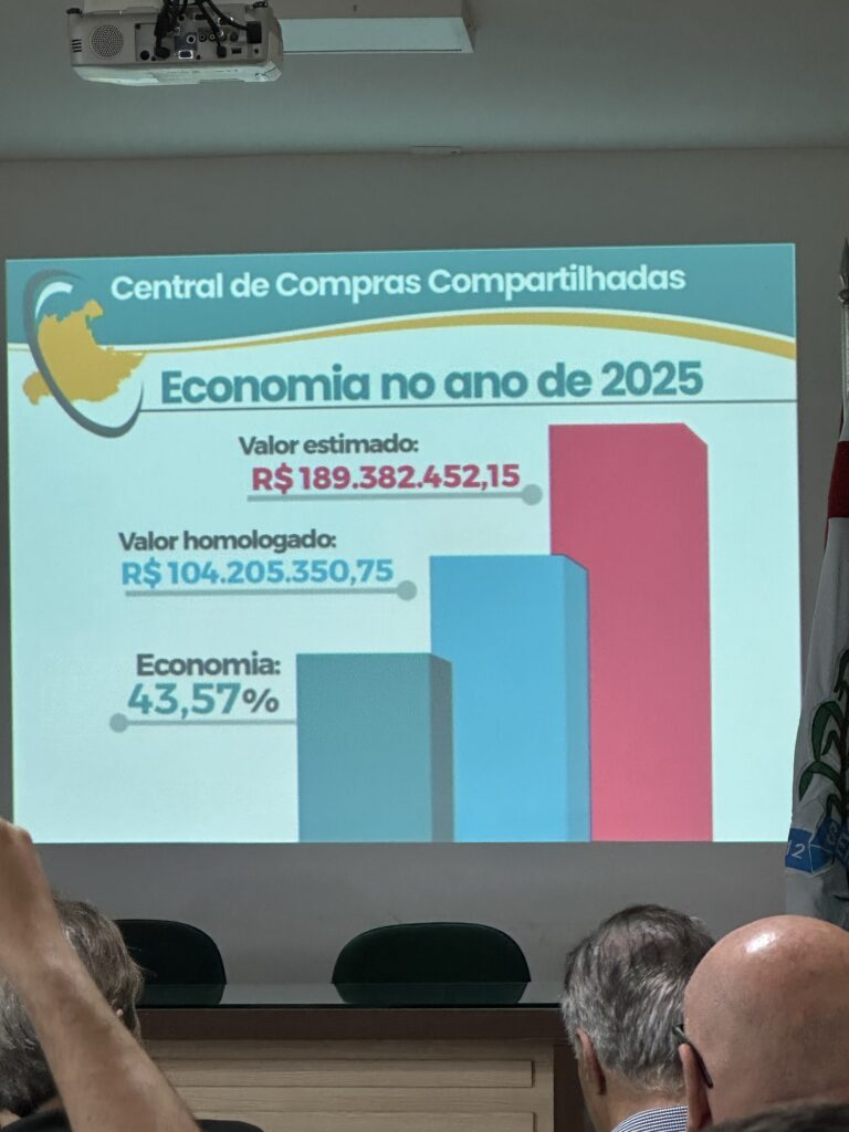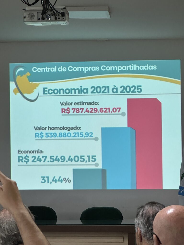 De acordo com o relatório apresentado pela secretária-executiva do Consórcio, Christiane Vale, a Central de Compras Compartilhadas gerou uma economia total de R$ 247.549.405,15 no período de 2021 a 2025. Esse valor, segundo os números, representa uma economicidade de 31,44% sobre o valor estimado de R$787.429.621,07 (com um valor homologado de R$ 539.880.215,92).